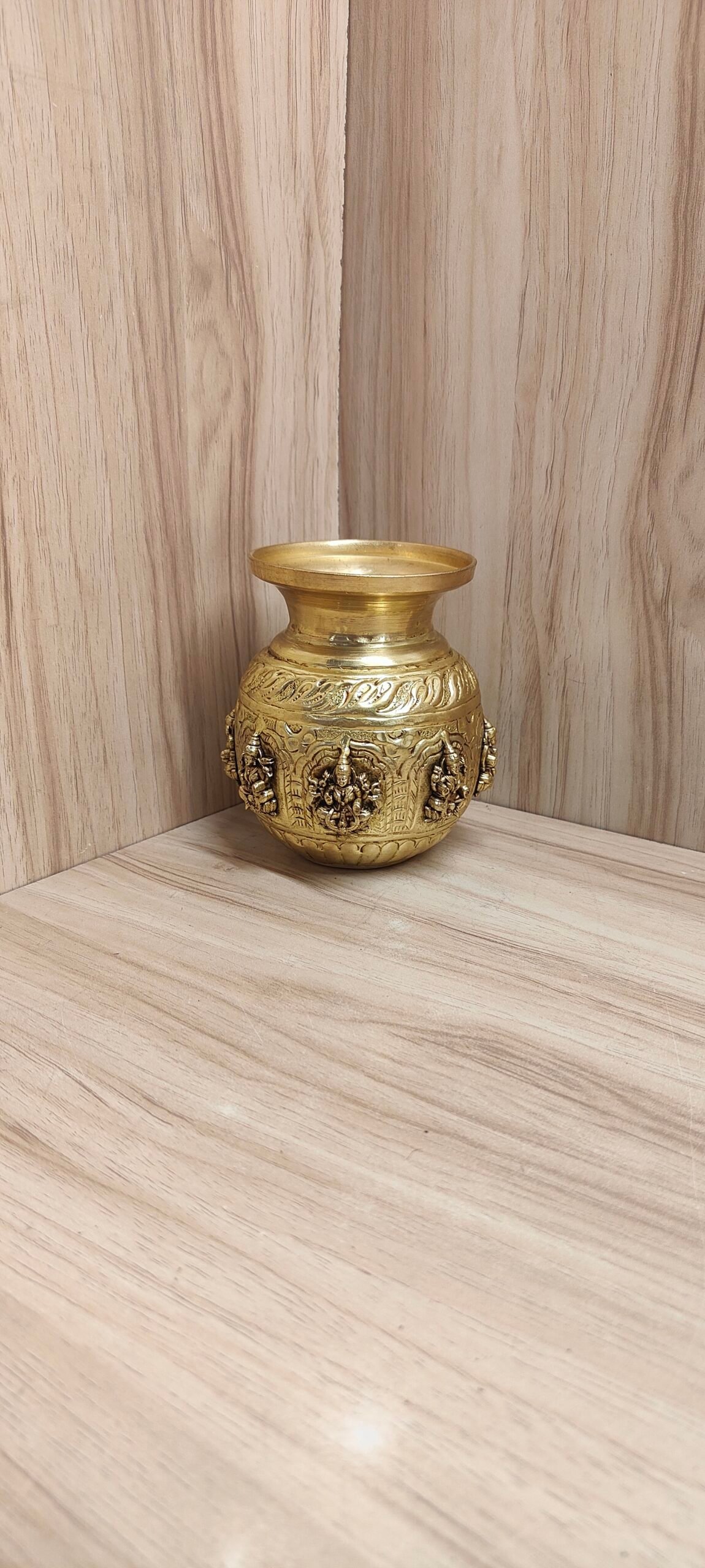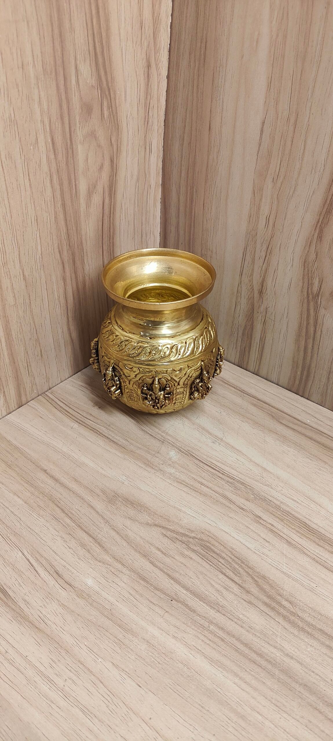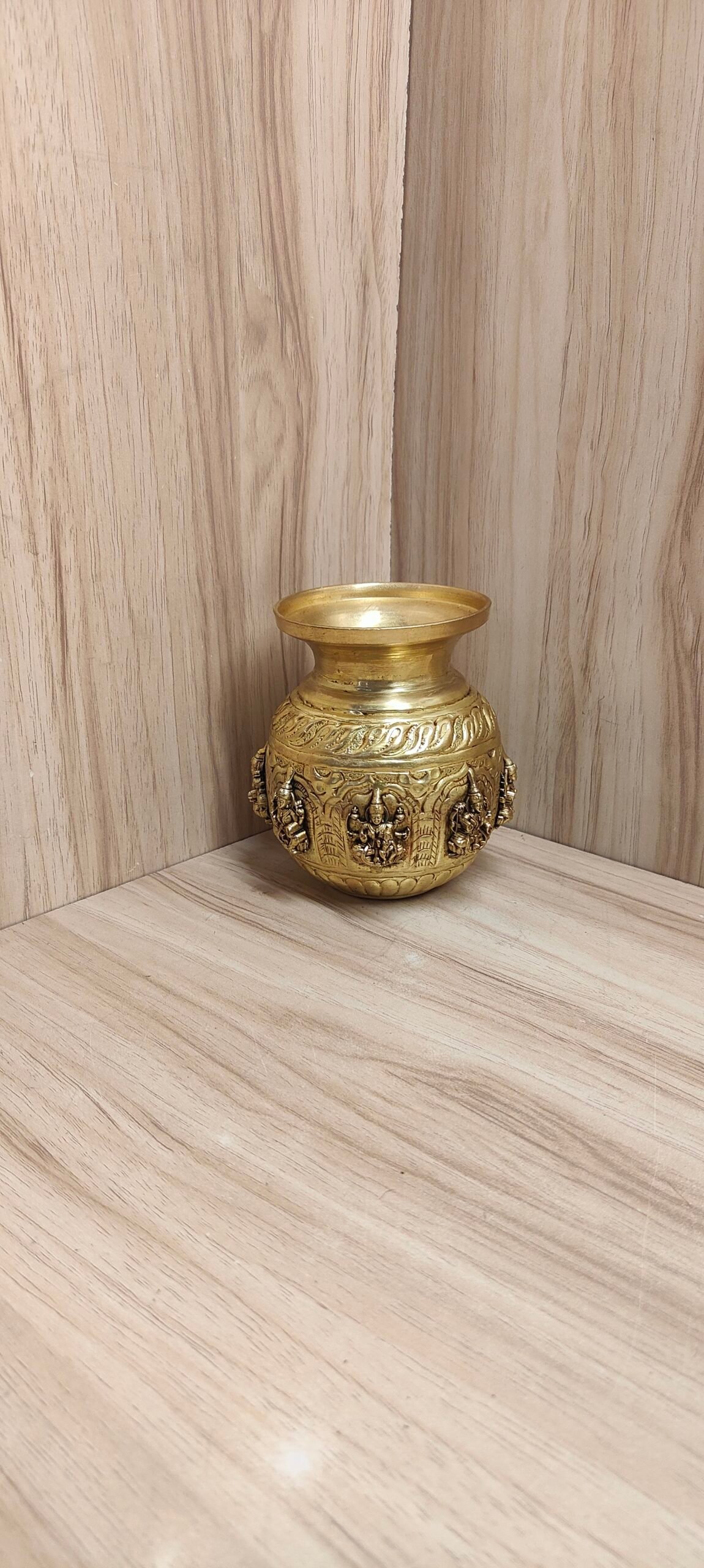 Crafted with fine detailing, the Astalakshmi design reflects devotion and traditional craftsmanship, making it a meaningful addition to any pooja room or home temple. This vessel is perfect for holding holy water, performing rituals, or using during special occasions and festivals.